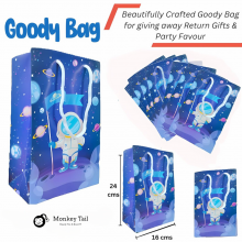 Attractive space theme bag to hold all the goodies and carry it back home. |